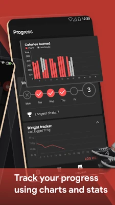 💯 Progress tracker - Track progress as you advance your training plan. The calorie tracker will show you how many calories you burned during keep-fit sessions. The weight tracker and body fat percentage calculator can help you track your weight loss progress. BMI and body measurements chart helps you see your body size improvement over time.