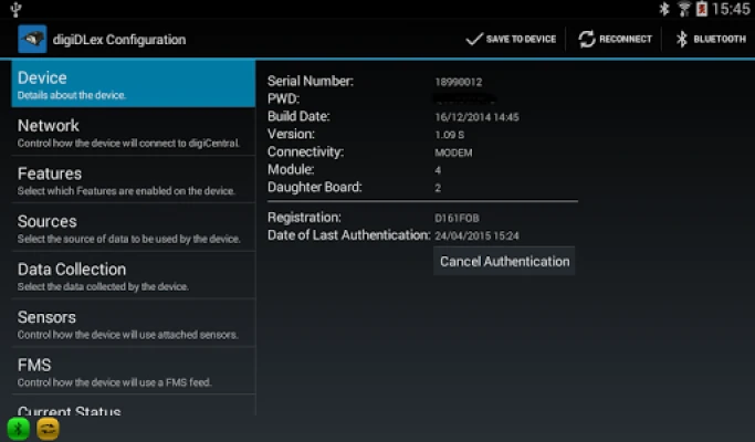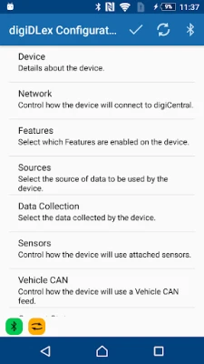 Configure the Tachosys digiDLex device via a bluetooth connection.