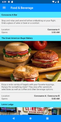 · Quickly locate food, beverage, and retail locations to help you fuel up and refresh before taking off.