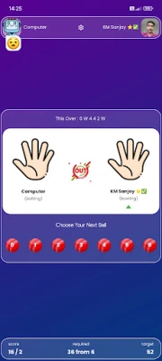 Batting : You have to choose any number from 1 to 6. In turn, the computer will randomly choose any number. If your and the computer's number is the same then you will lose 1 wicket. Otherwise you will get the score that you have chosen.