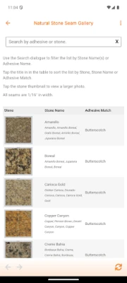 • All new Natural Stone Gallery allows for sorting and searching of stone images by adhesive match, and stone names (including variants)
