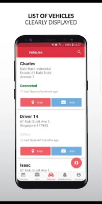 - Receive real-time push notifications when job status changes, or when a vehicle is speeding, stationary for too long etc.