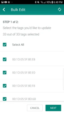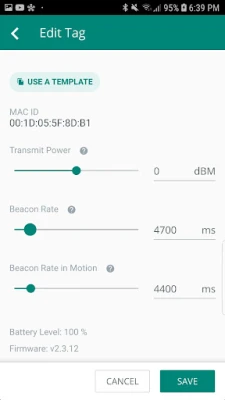 • Update tag attributes like Beacon rate, Transmit power etc. • View important tag information like MAC address, battery level etc.